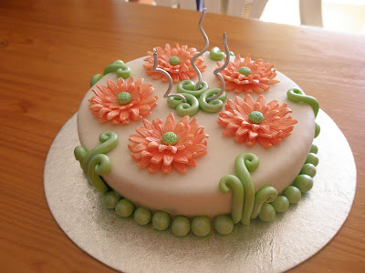 Mais um bolinho florido! Desta vez para uma senhora amiga da família, pelo que procurei acima de tudo a sobriedade, face à sua idade.