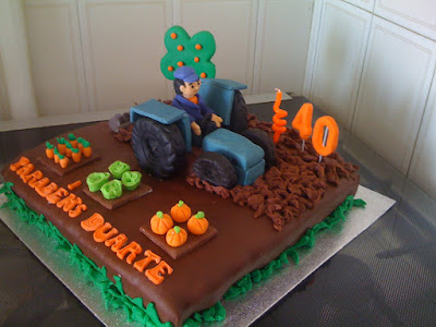 Uma colega do trabalho pediu-me um bolo especial para presentear o seu marido num aniversário especial. Como o seu hobbie é tratar da sua horta, lá me aventurei numa cena campestre! :)